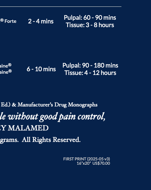 The most popular dental local anaesthetics used by dentists and oral surgeons includes Lidocaine, Articaine, Mepivicaine, Prilocaine and Bupivicaine. This poster reviews the molecular structure, formulation, brand(s), onset and duration.